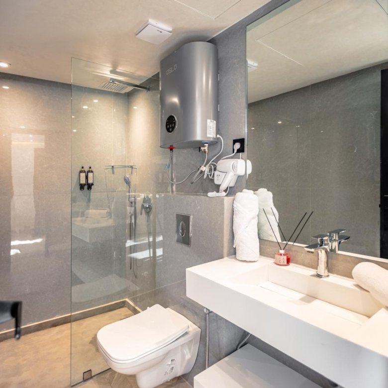 – Une salle de bain moderne avec des équipements modernes
