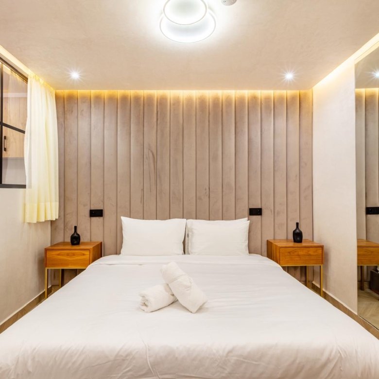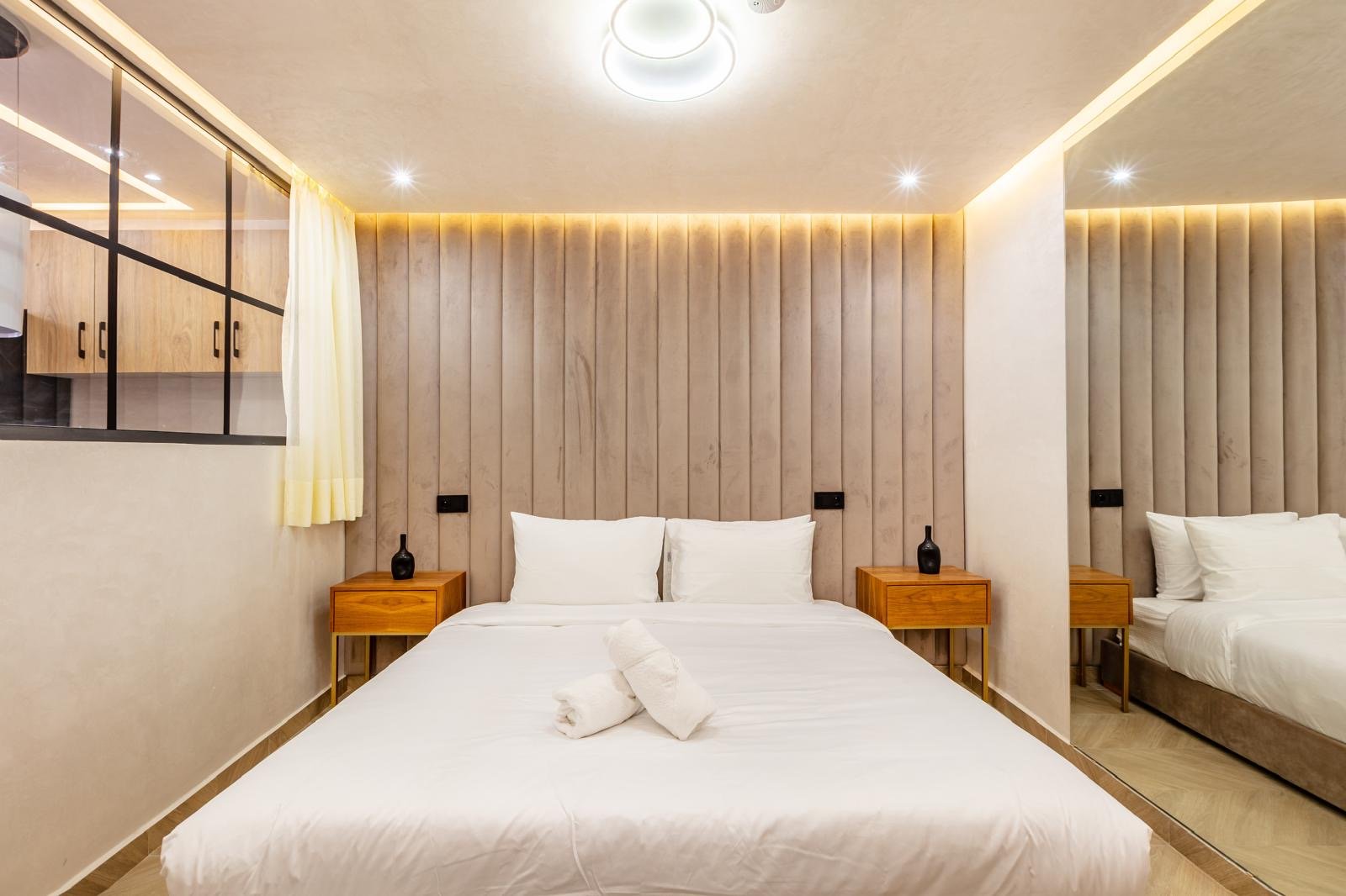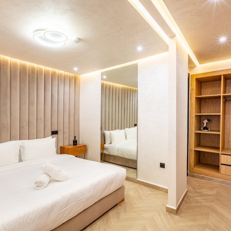 – une chambres spacieuses avec des finitions en bois de haute qualité et un éclairage élégant
